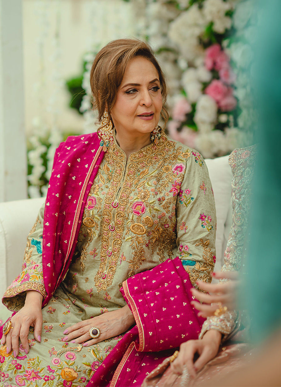 •SHEESHA SILK EMBROIDERED FRONT WITH HANDMADE WORK